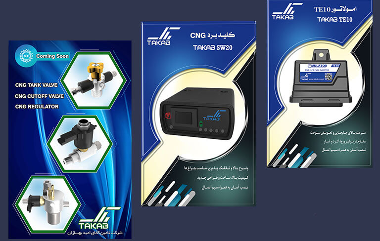 این بخش کوچکی از تلاش های شرکت تکاب در راستای تولید قطعات کیت CNG می باشدکه در حال حاظر محصولاتی همچون گیج فشار LPG ، امولاتور CNGدر دو مدل امولاتور پژویی و امولاتور پرایدی، کلیدتبدیل سوخت در چهار مدل (12 ولتی،5 ولتی، مقاومتی و LPG) به لیست تولیدات خود افزوده است.تولید محصولات جدید ،انواع قطعات خودروهای گازسوز، مانند رگلاتور، شیر مخزن، شیـرخودکـار و همچنین کلیـد بردها قرار داده و امید است در آینده بسیـار نزدیک به تولید انبوه رسـانده و روانـه بـازار کند.